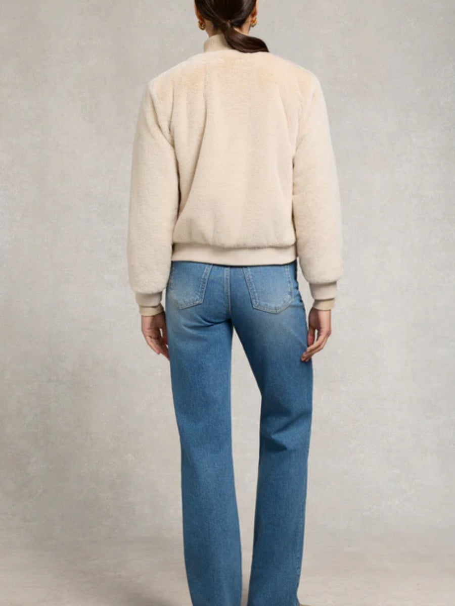 Effortlessly combining cosy comfort with elevated detailing, the Teddy Bomber Jacket is your go-to for laid-back luxury. Its super-soft exterior wraps you in warmth, while the double fleece lining adds an extra layer of insulation. Open-top patch pockets keep essentials close at hand, and the knitted rib hem and cuffs ensure a structured fit. Shiny gold domed buttons down the center front lend a polished finish, making this jacket as stylish as it is supremely comfortable.