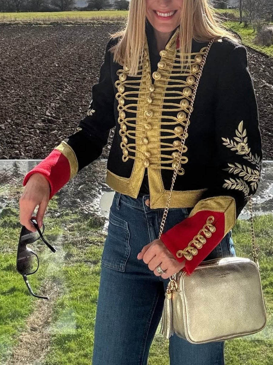 Vintage Military Style Embroidered Wool Jacket